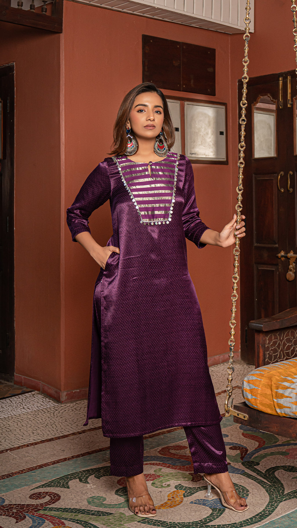 Fizza - Purple Pure Gajji Silk Kurta Set