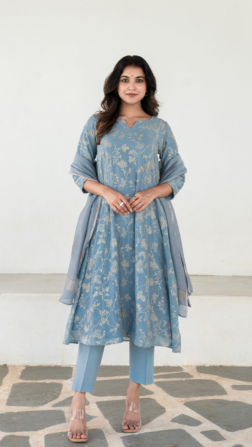 Kriti Embroidered Chanderi Kurta Set - Ice Blue